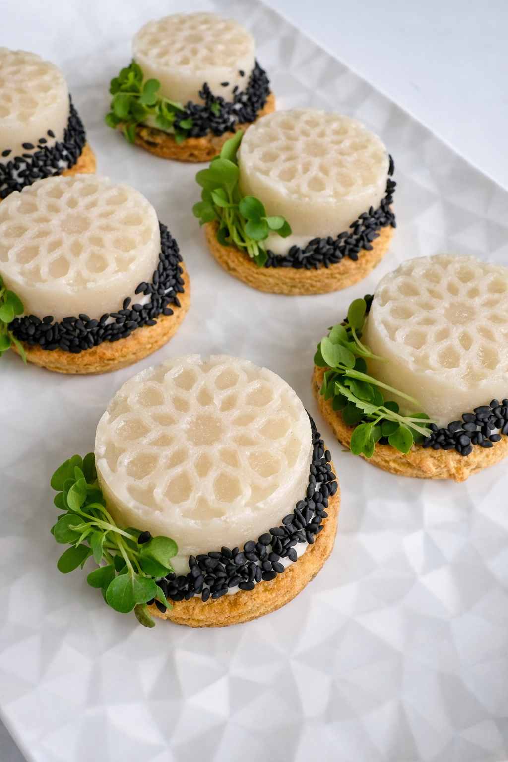 Канапе з брюссельською капустою на подушці з сиру чедер